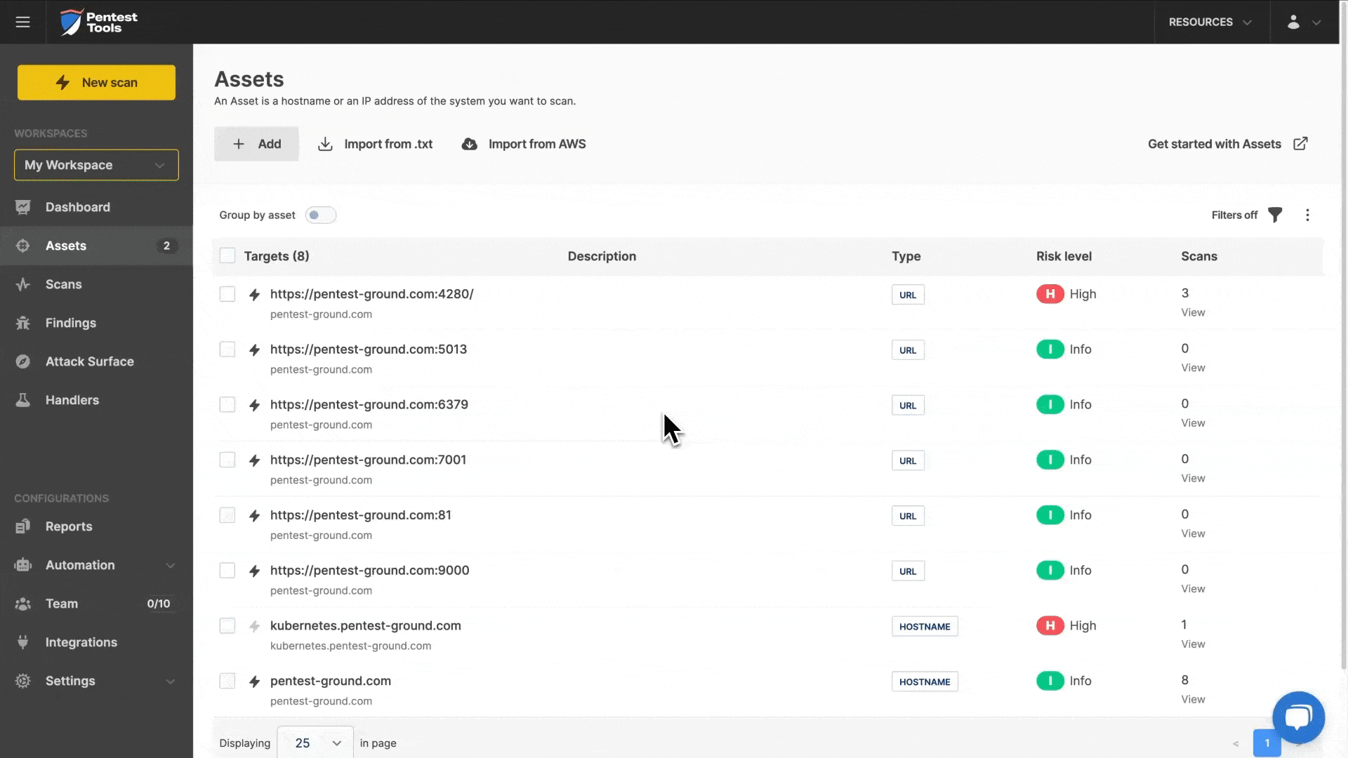Besides integrations with Discord (for custom notification flows) and Vanta (for automatic PDF reports from scheduled scans), we also added an AWS integration to make importing AWS targets into your account quick and effective.