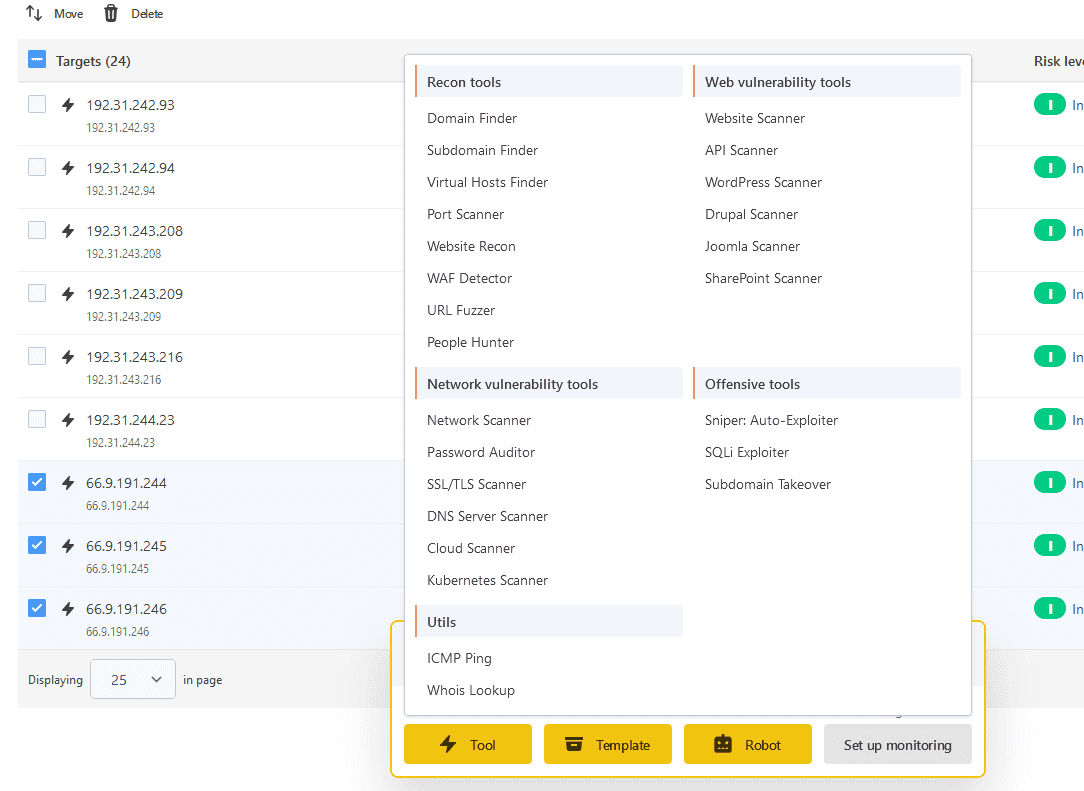 Then we’ll go back to the Target section on Pentest-Tools.com and select all those IPs.